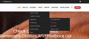 Close the textbook pop-up window if it appears. Use the textbook list found at UUMS.org. It is under Registration, which is under Academics.